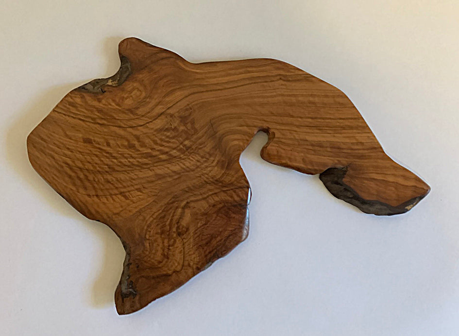 This Jita is a slice of Budgeroo from South-West Queensland. It measures 26.5 x 18 cm at its longest and widest and is 0.7 cm thick. A maximum 10cm diameter pot will sit within the widest area. Finish is satin varnish.
